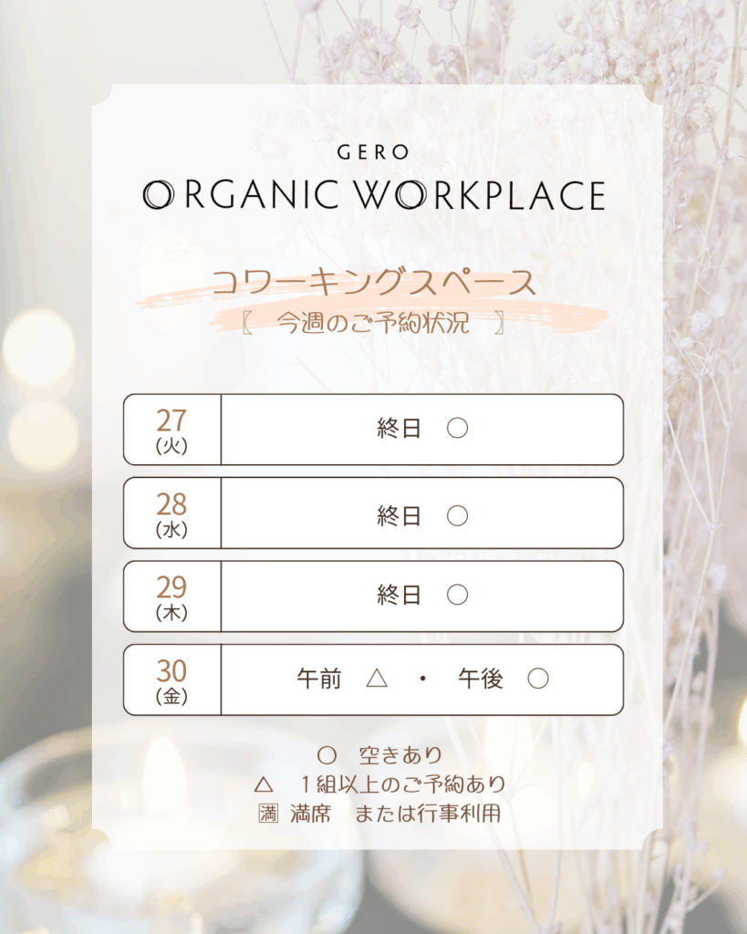 今週のご案内 2026.1.272026年1月27日2026年1月27日施設案内 今週は、1/27~29は終日ご利用可能です。ご予約は 公式ライン をご利用ください。 前今週のご案内 2026.1.20